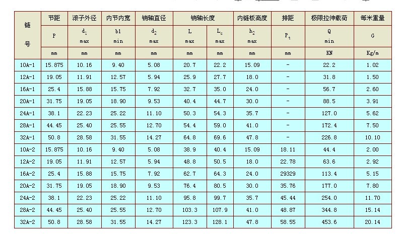 传动用短节距精密滚子链图样规格